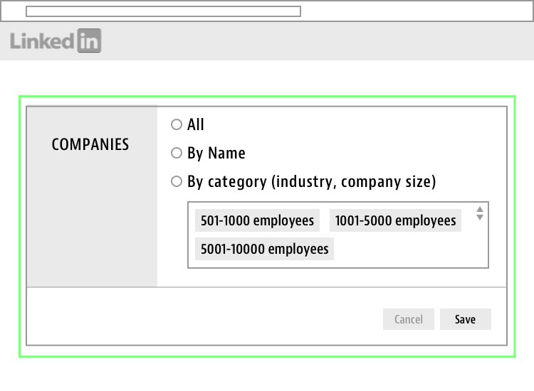 Narrowing your ad targeting based on the size of company you’re trying to reach is a good way to filter for only the perfect potential customers. If you service enterprise businesses, reaching small startups with your ad will lower your ad spend ROI. Set your target audience based on company size to make sure your ad is appearing in front of the businesses you actually want to attract.