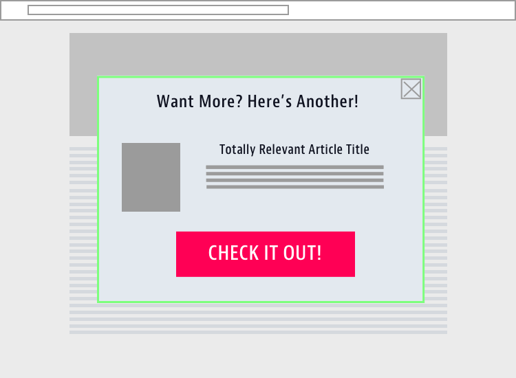 Exit intent doesn’t just have to give visitors a discount to get them to stay on your site. It can also serve them with a relevant high-value piece of new content. If you want to bolster your content marketing or keep users on your blog reading more of your posts, an exit intent popup directing them to another post can get them interested in reading more.